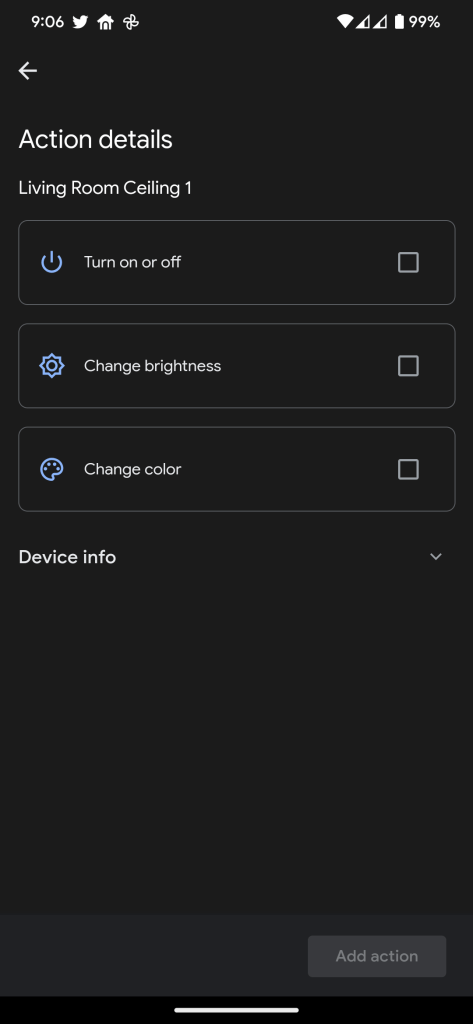 Over the past several days, the Google Home app has rolled out a new interface for adding smart home devices to routines. Where the app previously allowed users to adjust on or off settings through a single page with drop-down settings for each light or switch in their home, the new page allows for routines to control other aspects of each device.