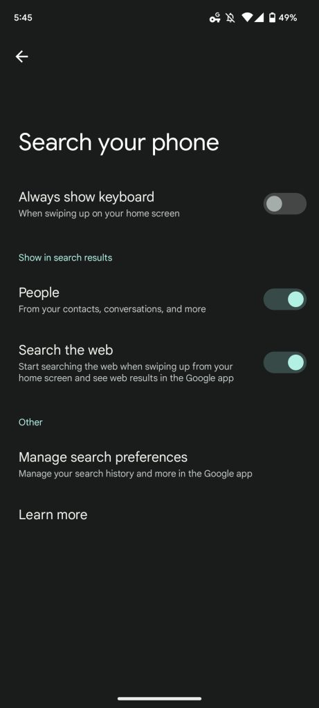 Unified Pixel Launcher search, which was pulled at the last second from the stable launch in August, is back. Live during the betas, it starts with the search field at the bottom of your homescreen matching the bar at the top of the app drawer. Entering a query there will bring up both web and phone content, including applications, app shortcuts, contacts, Play Store results, and screenshots.