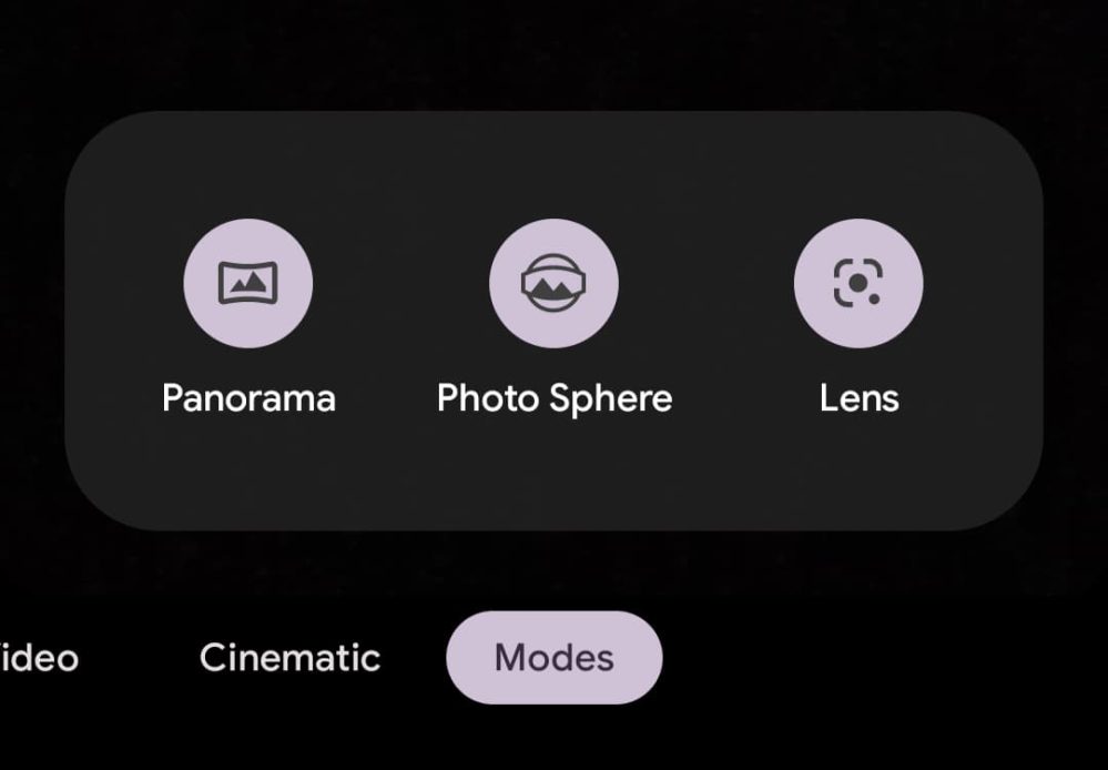 The good news is that there are still some easy ways to access Google Lens on Pixel phones. The first way is still within the Google Camera app, too! Simply scrolling along the camera app’s “modes” along the bottom of the screen will show a “Modes” menu which includes Panorama, Photo Sphere, and a direct shortcut to open up Lens.