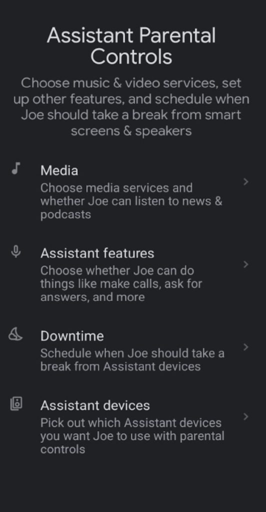 At a higher-level, you can decide which Assistant devices around the house they can use and during which times of day (Downtime).