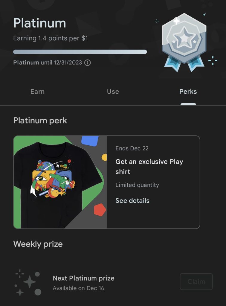 Occasionally, being on a higher Google Play Points tier provides nice perks, with Platinum members now getting a rather cool T-shirt.