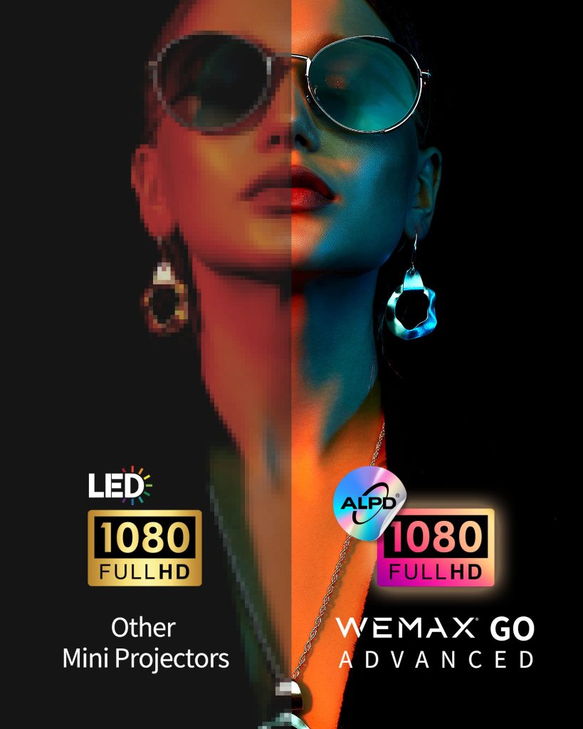 The Wemax Go Advanced uses an unmatched ALPD laser technology to project images with greater light efficiency, brightness and a wider color gamut. It features native 1080p resolution for HD images, while additionally supporting 4K.