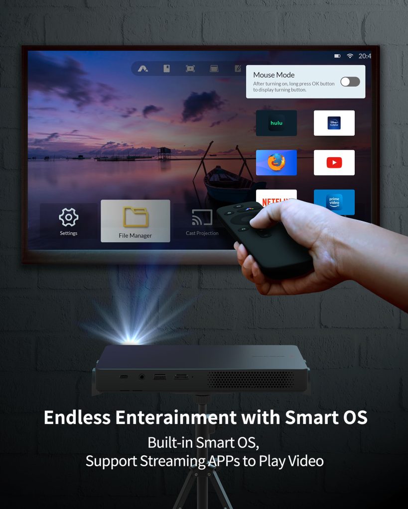 The ultra-slim Wemax Go Advanced laser projector is also a perfectly capable standalone unit, housing Android TV as the main operating system. With Android TV, you get access to just about every streaming service out there, meaning you don’t ever have to plug in a Chromecast or streaming box unless you’d prefer one.