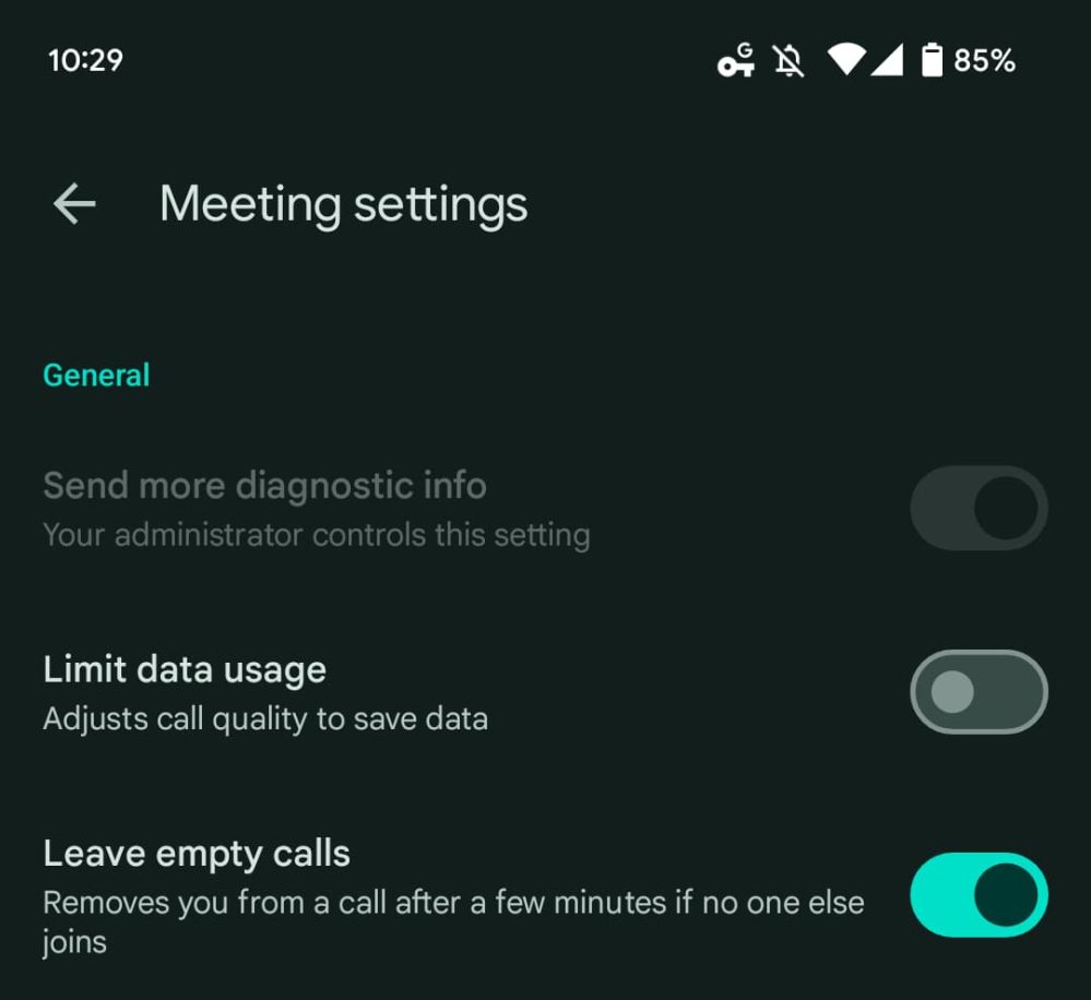 Update 12/20: Version 181.0.491208130 of Google Meet and 2022.11.27.491208063 of Meet (original) use the new Material You toggles. Compared to Docs and its overflow menu that immediately closes on tap, you can more easily play with the new buttons in Meet from Settings > Meeting settings.