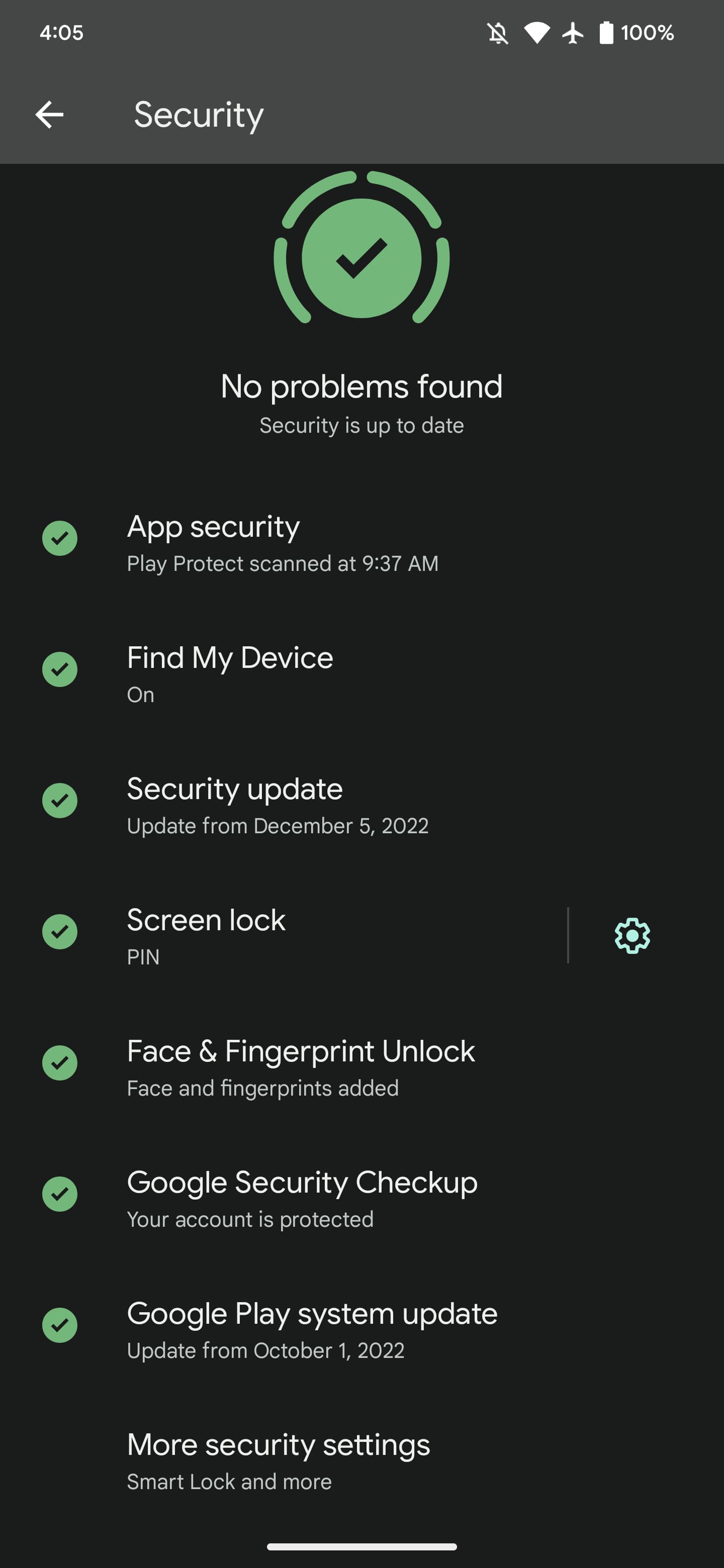 The very first item on this page is a card that notes the status of your device with the ability to initiate a Scan. If there are no problems, you get “Looks good” and the shield checkmark in green. If issues are identified, like in the cover image above, you’ll be prompted to take action. (It’s also worth noting how the design Google showed off at I/O 2022 in May features “Protected by Android” branding that does not appear today.)