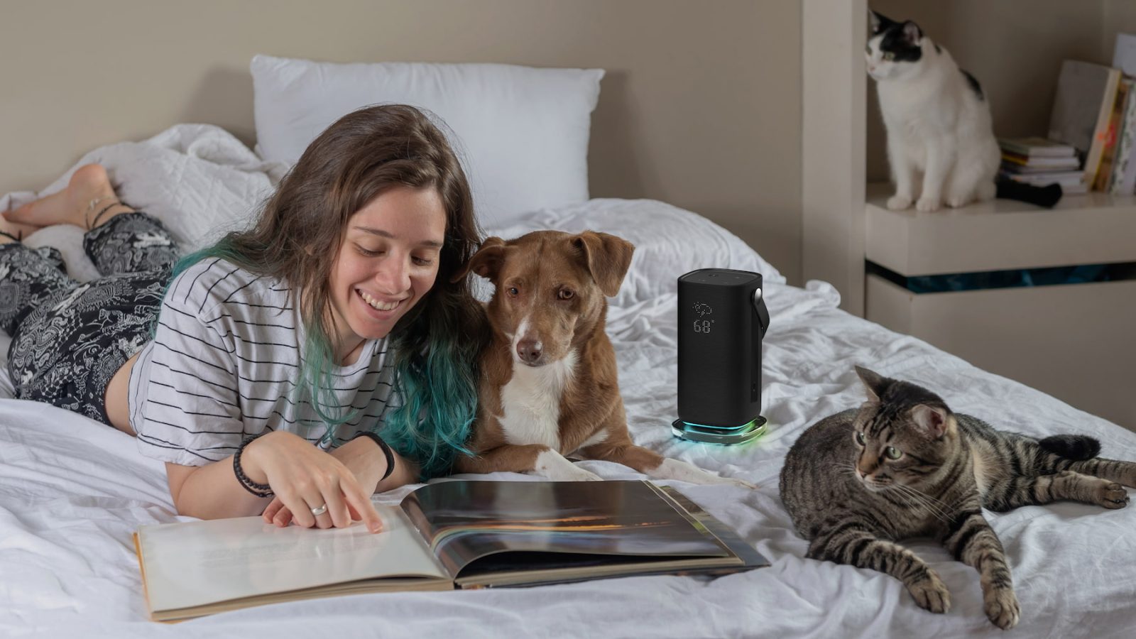 In terms of the actual audio, Acer’s latest smart speaker includes 360° audio, boosted by a subwoofer and DTS Sound. For an even fuller sound, you can also pair multiple Halo Swing speakers together.