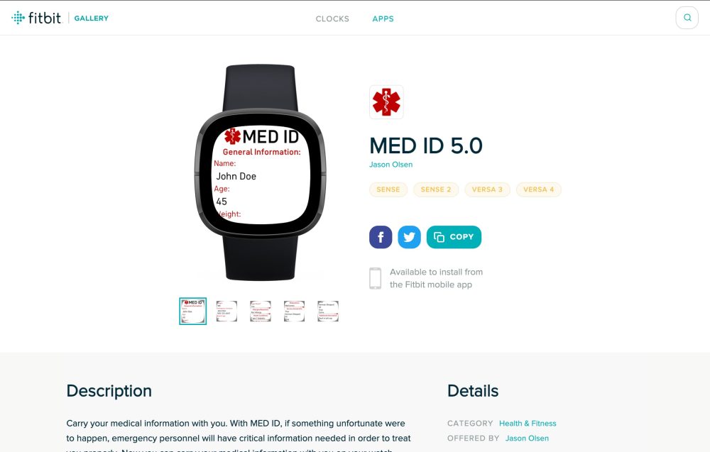 Recently, an app called “MED ID 5.0” appeared in the list. It’s made by a third-party developer to “carry your medical information with you” and is listed as supporting Versa 4 and Sense 2. At this point, it’s not clear whether that support is intentional or an accident (and will be removed).