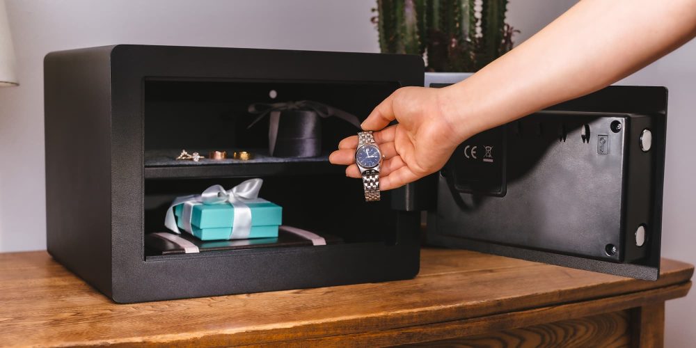 The safe is designed to house items such as important documents, jewelry, or other valuable items in your home. The internal space measures in at 13.6 inches wide, 9.5 inches deep, and 9.7 inches tall, with a shelf inside to hold up some items.