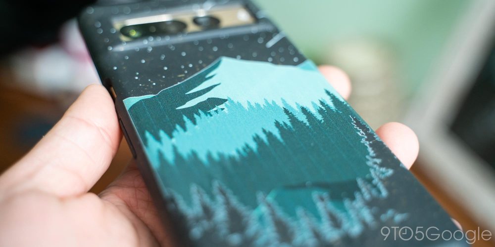 For my Pixel 7 Pro, I’ve been using Pela’s “Black Boreal” design, a graphic case that has a black case overall with a print of a blue-green mountain on the back with trees and stars to complete the scene. It’s a great look, and the quality of the print is quite good. Despite being exposed to my hands and pockets, there’s been no degradation of the print thus far. I did notice that, at first, the print felt a little tacky in my hands, but that’s gone away in active use.