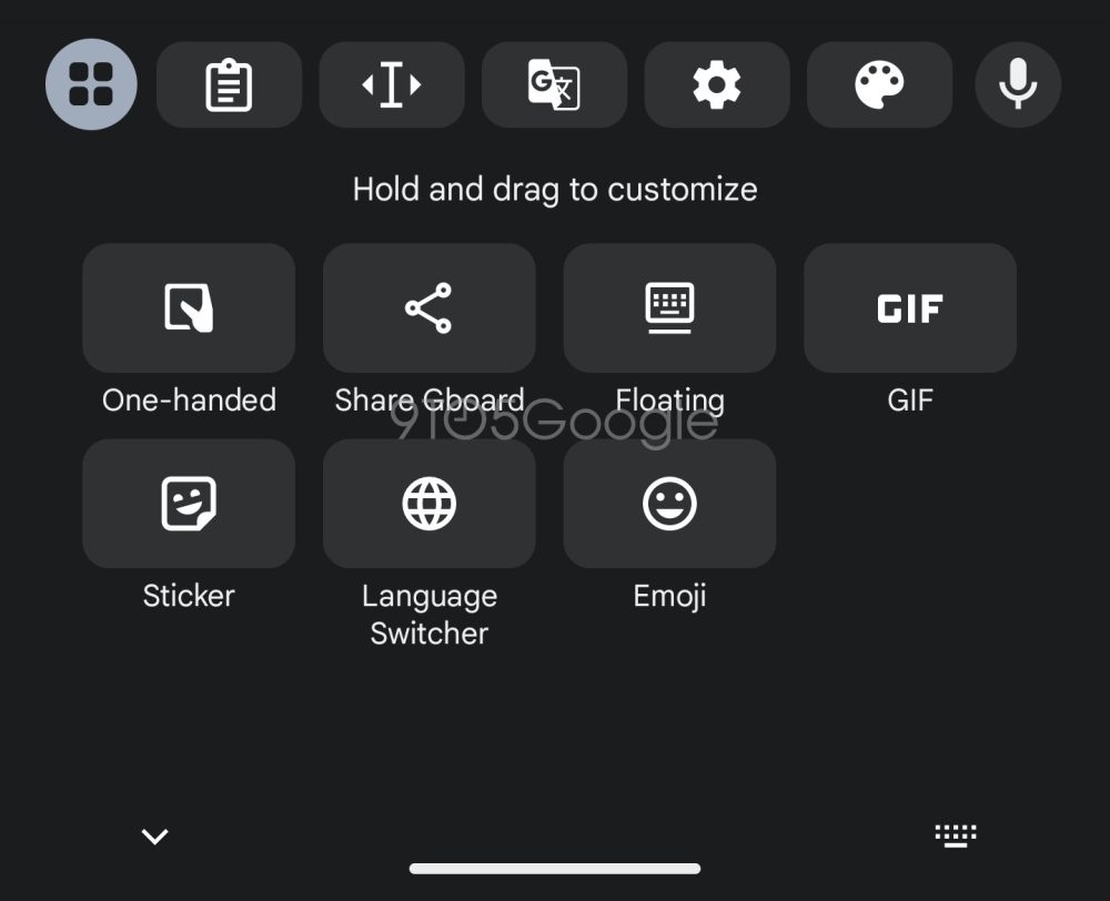 Meanwhile, tapping the top-left corner button shows a new grid layout for the remaining shortcuts that’s more dense. “Language Switcher” is a recent addition here, while Gboard is more explicit about how you can “Hold and drag to customize.” It was previously a bit hidden.