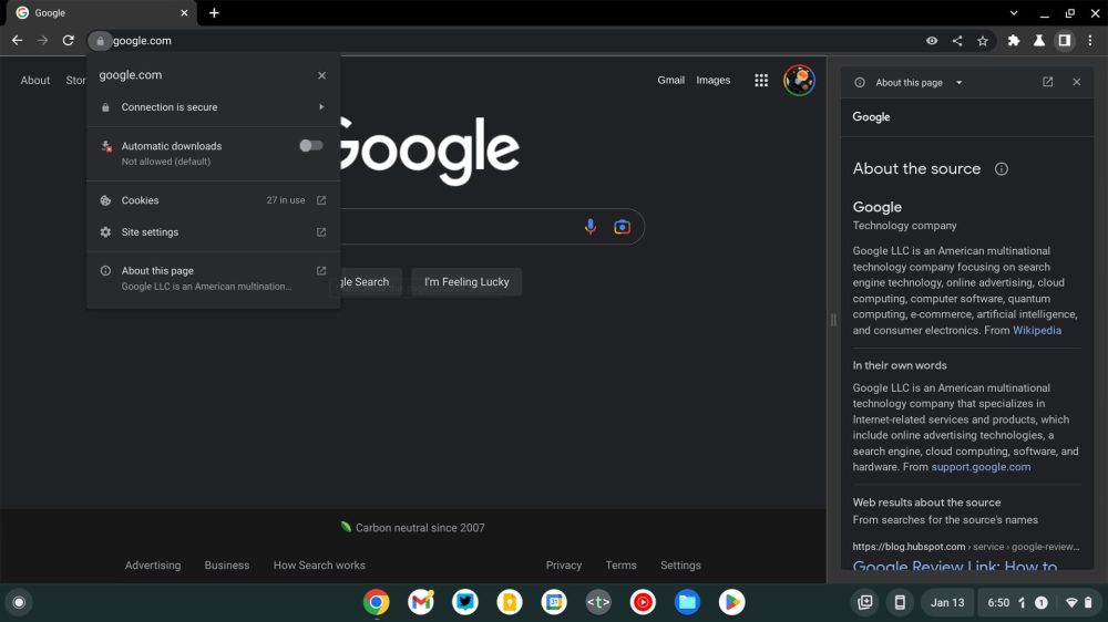 If you tap the lock icon at the left of the address bar, “From the web” has been renamed to “About this page.” Tapping opens a more detailed sidebar that is populated with information from the equivalent “About this source” Google Search feature. This includes a Wikipedia snippet, “in their own words” description, and “Web results about the source.” The change might not yet be widely rolled out.
