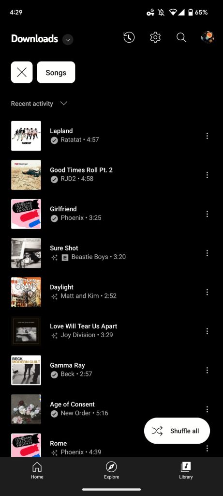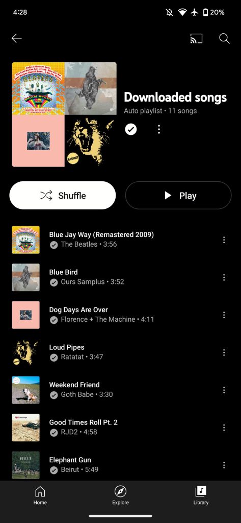However, gone is an Auto playlist called “Downloaded songs” that would show individual downloads that you initiated from a track’s overflow menu. Those songs would be grouped together with the ability to play all at once, like any other playlist.