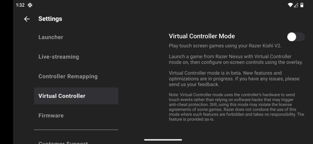 How to enable Virtual Controller Mode for the Razer Kishi V2