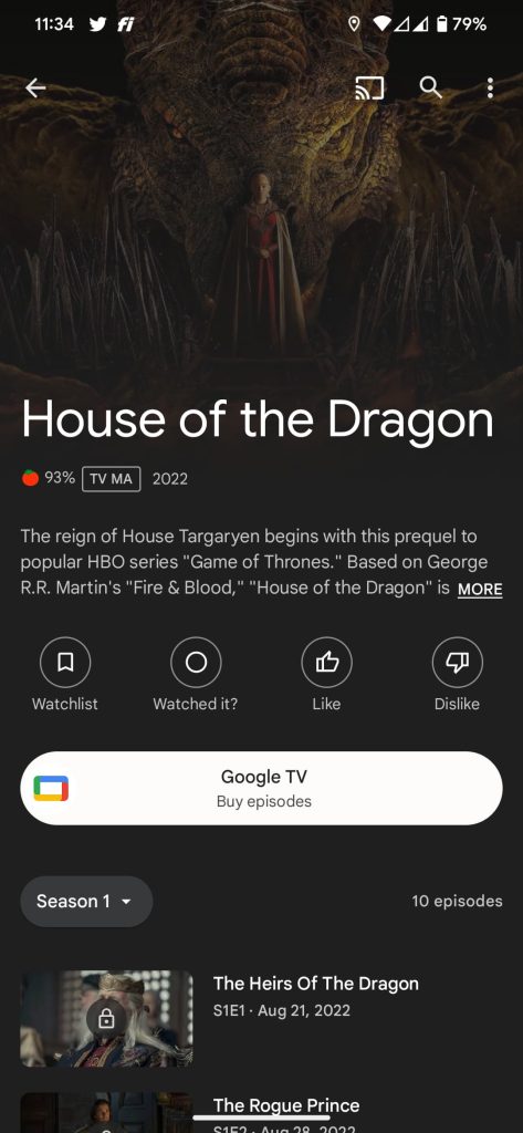 This is happening both for HBO Max original content, such as the new The Last of Us series, White Lotus, and House of the Dragon, as well as content that is in the platform’s library and not available on other apps, such as Mad Max: Fury Road, The Big Bang Theory, Doctor Who, Game of Thrones, and Black Adam. None of these shows or movies surface a shortcut to HBO Max through Google TV.