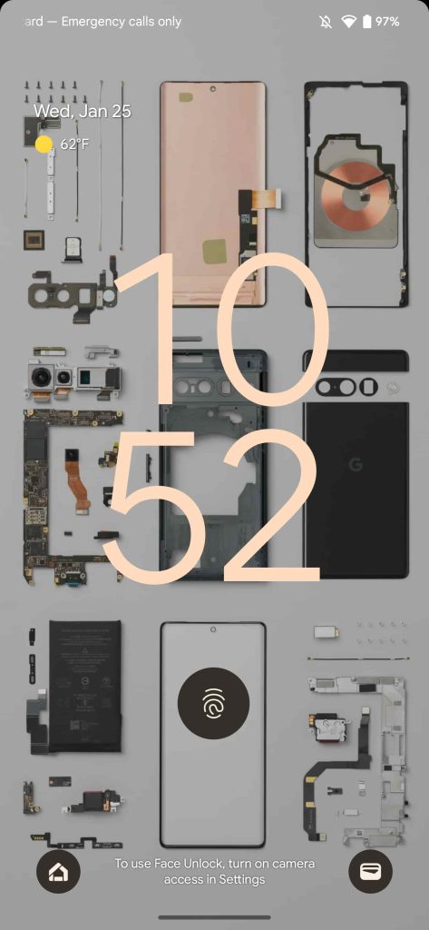 Google’s hardware design team occasionally takes its own teardown shots, and one for the Pixel 7 Pro works quite nicely as a wallpaper for the phone in question.