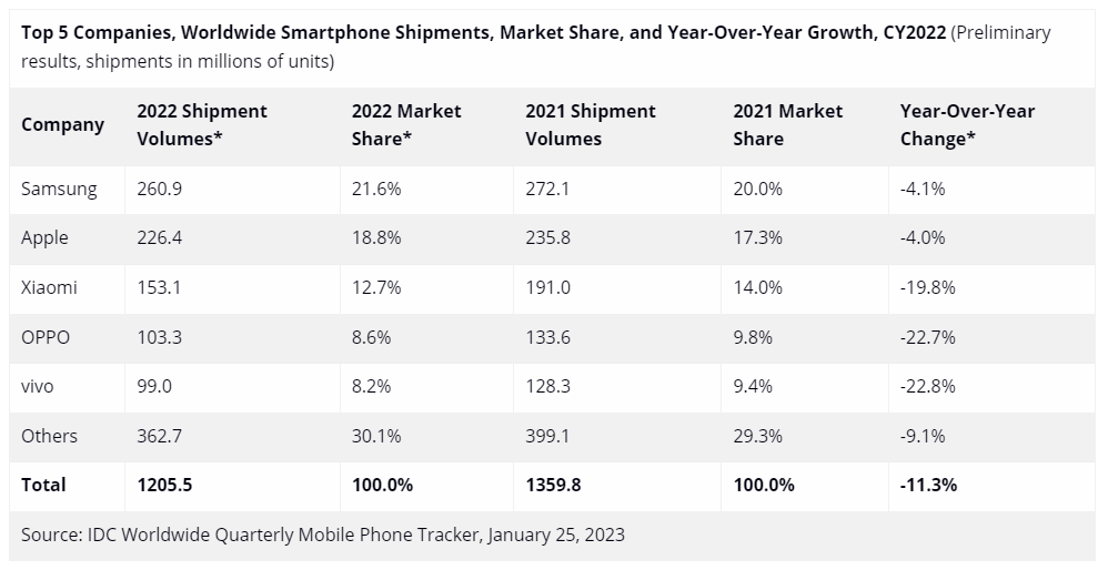 With new devices such as the Galaxy S23 series on the horizon, it will certainly be interesting to see how the market comes together through 2023. The IDC believes this will be a “year of caution” on the part of smartphone makers as many look to avoid “excess inventory.” It’s speculated that “generous trade-in offers” could be one way in which smartphone makers attempt to push newer models as customers are now keeping phones for around 40 months, which also makes buying used smartphones more attractive.