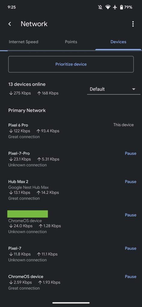 On the Wi-Fi page, tapping the Devices tile, which is now the only place that notes a total count, opens an entirely new page. The Devices list is no longer a tab within the Network page shared by “Internet Speed” and “Points.” (That’s now “Network performance” instead of “Network history.”)