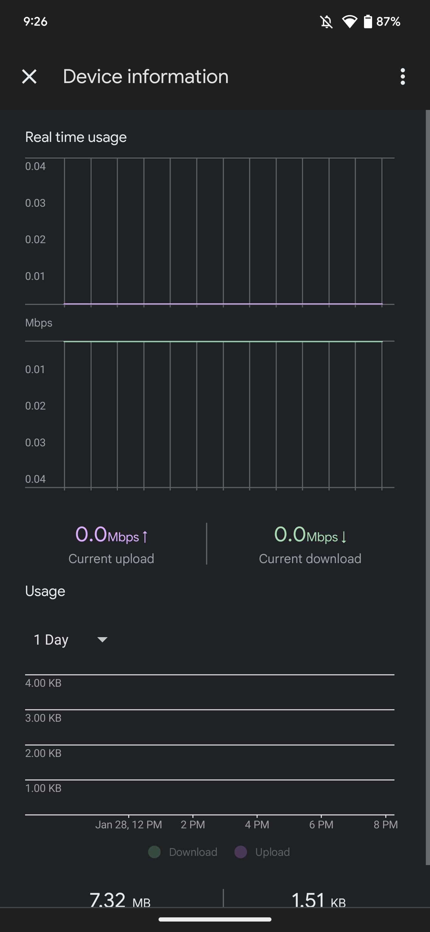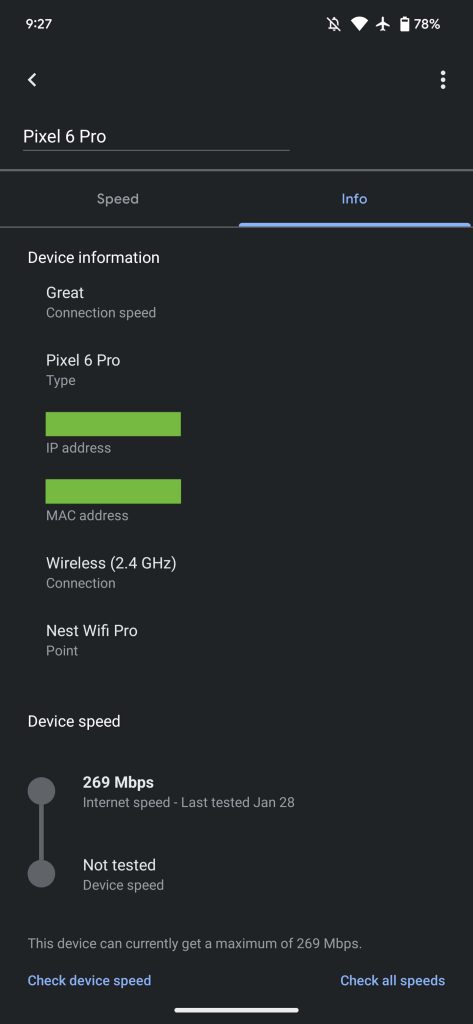 You then get device info and speed, with the ability to run tests at the bottom. Google has moved device usage graphs to a new page where functionality is unchanged. It’s prioritizing device information over those graphs.