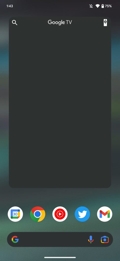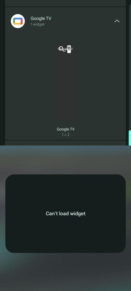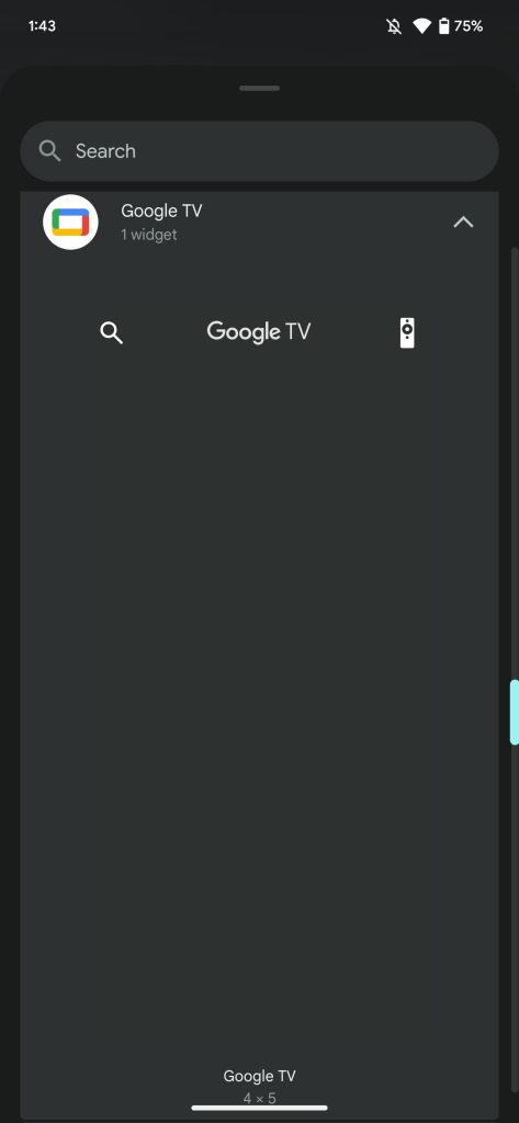 With version 4.38.7.4 (from December) Google TV is appearing in the Widgets list, but it’s clearly not ready. The preview says the default size is 4×5, and it can’t go any smaller than that when placed on a homescreen. However, it can take up your entire screen.