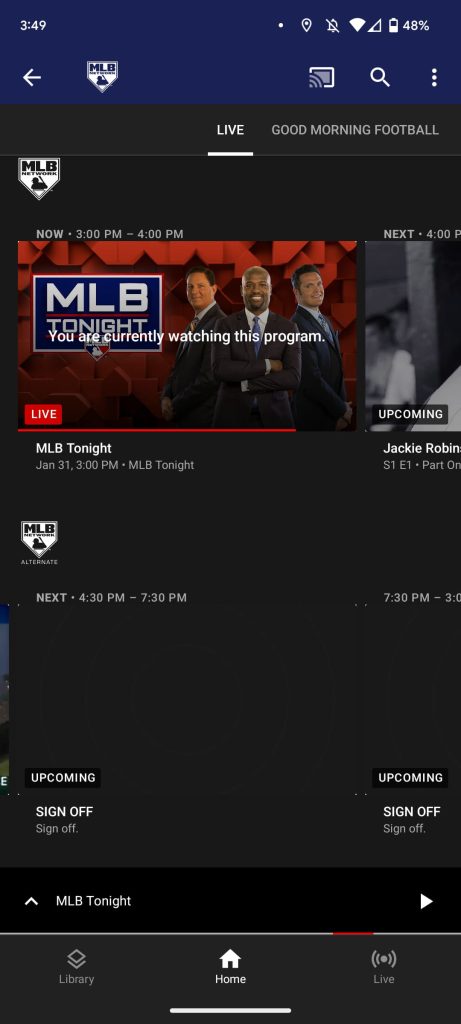 “MLB Network content will no longer be available on YouTube TV” starting January 31, 2023 — though we still have it as of this afternoon (PT). Additionally, you’ll “lose access to any previous Library recordings from this channel.”