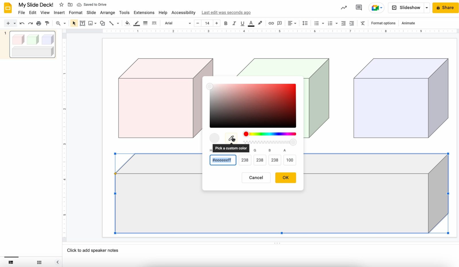 Google is making a small but profound usability tweak by adding an eyedropper tool to the color picker in Docs, Sheets, Slides, and Drawings.