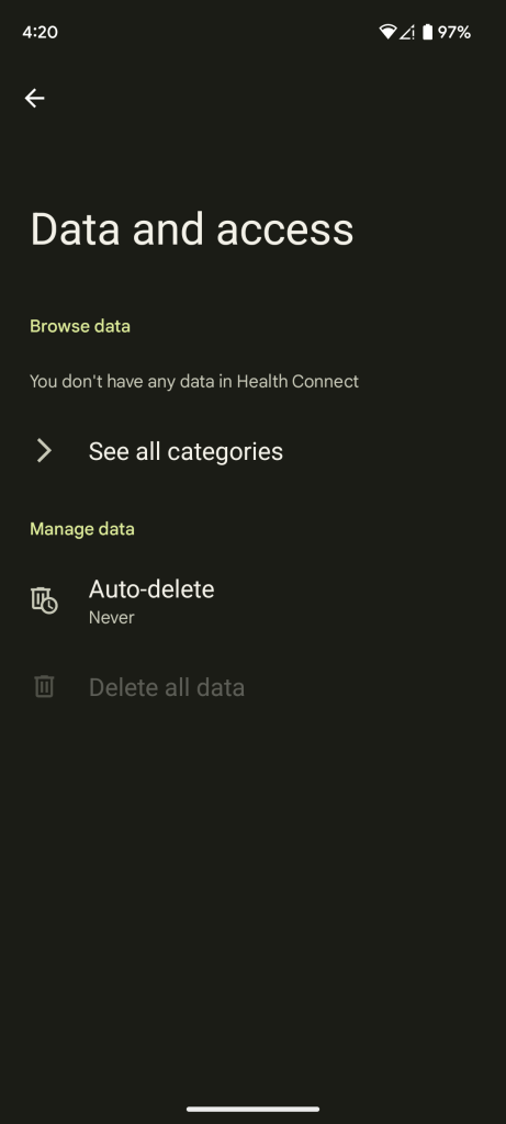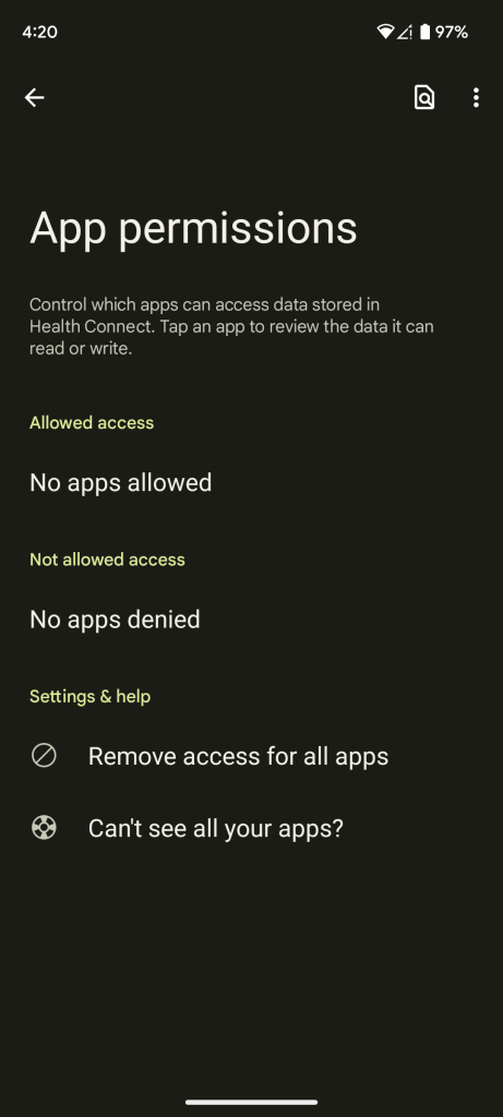 Once you’ve navigated to that page, Health Connect works as usual. You can see apps that have used Health Connect to sync data and set up those channels in the first place. It’s a minor change in the end, but one that’s certainly welcome. By having this as a system offering, it’s more likely that more folks will have it and that more apps will adopt it. That said, burying it down a bit further means fewer people will have it on hand.