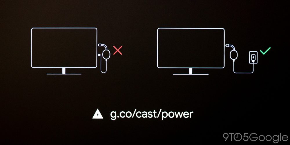 What’s supposed to happen is that an error message lets you know the Chromecast is underpowered. However, our testing resulted in a completely black screen and that tone being played over and over again. This was in conjunction with using a low-power charging brick combined with a TV that for some reason doesn’t show the error message.