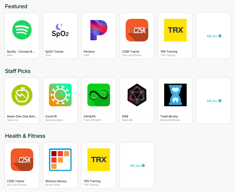Fitbit attracted some big developers earlier on — if not outright publishing the application themselves in the case of Pandora and Starbucks. As of late, the Fitbit Gallery is mostly home to smaller apps and tools.