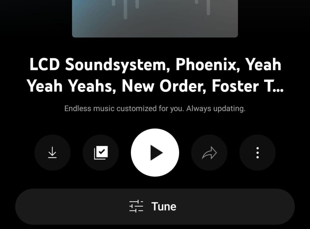 Once done, you get a YouTube Music Radio playlist with the following description: “Endless music customization for you. Always updating.” It’s named after all the artists and bands you’ve chosen, which is a bit unwieldy.