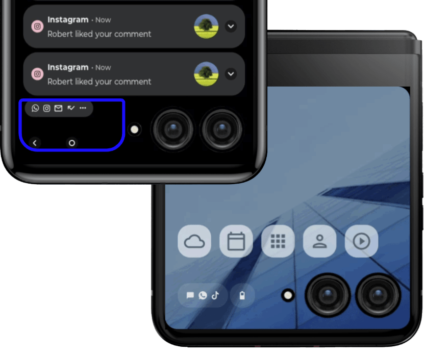 One of the images shared shows how Motorola will adapt software to the unorthodox display, with two navigation buttons appearing on the lower left half, and full-size notifications appearing above.