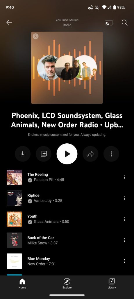 Previously, YouTube Music would create a radio when you select a single song from pretty much anywhere in the app. The station would start after the current track ends, with Up Next noting what’s queued. You’d also have the ability to save that radio as a regular playlist.