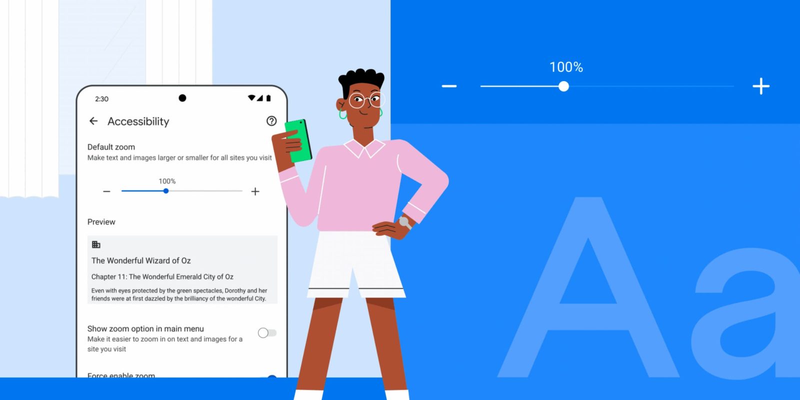 Google is rolling out a handful of new accessibilities feature for Android (Chrome zoom) and Wear OS 3 (sound and display modes) as part of a modest Spring feature frop.