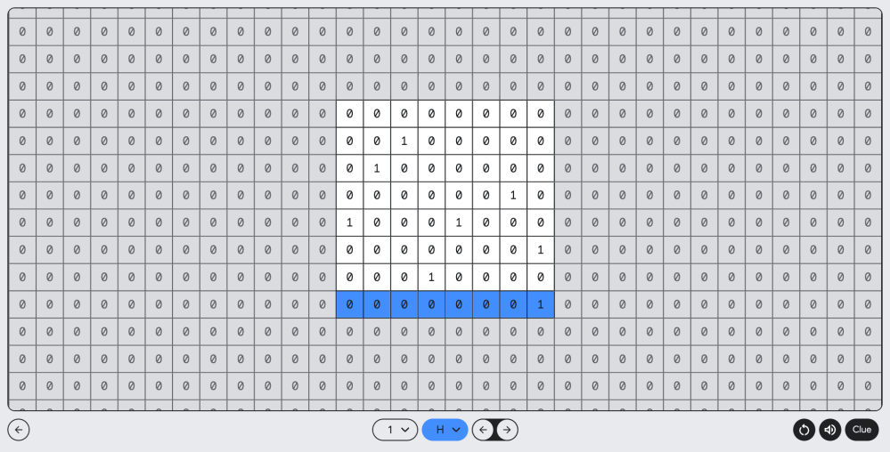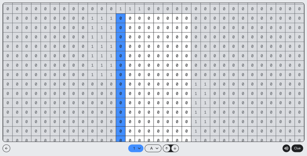 Our first binary slider puzzle of the Google I/O 2023 teaser, Input 2.0 offers an 8×8 grid, primarily filled with 0s. Notably, there are eight 1s in the puzzle, arranged in a diagonal line. Our clue for this puzzle is a series of arrows, which we’ve reproduced below: