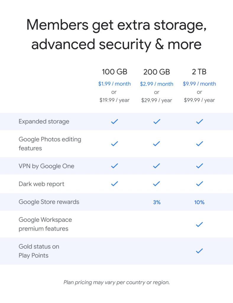 Previously, the Google One VPN required the $9.99 per month 2TB plan (or higher) plan. All Google One plans, including the $1.99/month 100GB and $2.99/month 200GB, will soon be able to use it (“starting today, and rolling out over the next few weeks”).