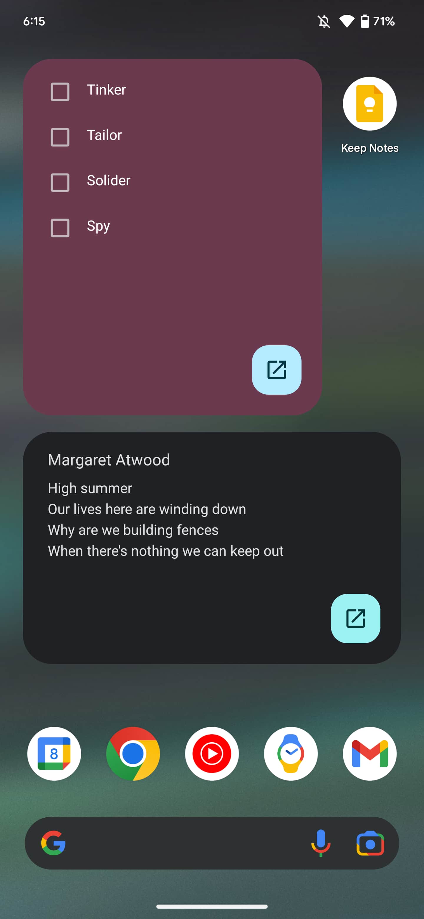 Besides the clover or toolbar-shaped “Quick capture” that immediately lets you create a text, checklist, drawing, audio, or image note, Google Keep has historically offered a “Note collection” widget. It lets you view a feed of notes: All, Pinned, Reminders, or a specific label. You can scroll through the list, with a tap opening the app. It’s basically a miniature Keep on your homescreen and one of Google’s better widgets.
