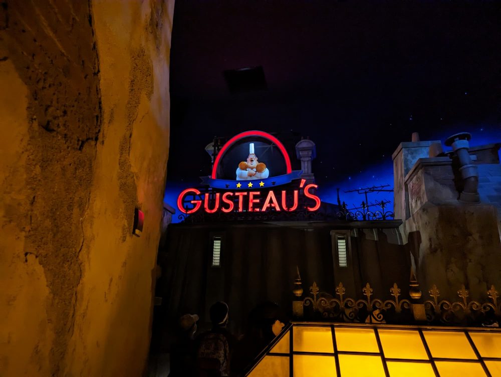 Processing also plays a role in the final shot. I noticed that in darker settings, the Pixel was typically closer to what my eyes actually saw, especially in the image with Gusteau’s from the Remy’s Ratatouille Adventure ride.