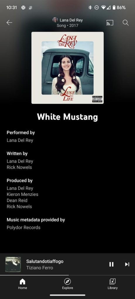 Tidal even offers sound and mixing engineer information with appropriate credit given to backing bands, music samples, and even studio personnel where available. The streaming service also includes reviews and critics’ awards within an “Info” panel if the track or album has received those too. However, somewhat disappointingly the way that song credits are displayed on YouTube Music differs quite drastically from services like Tidal with far fewer data points.