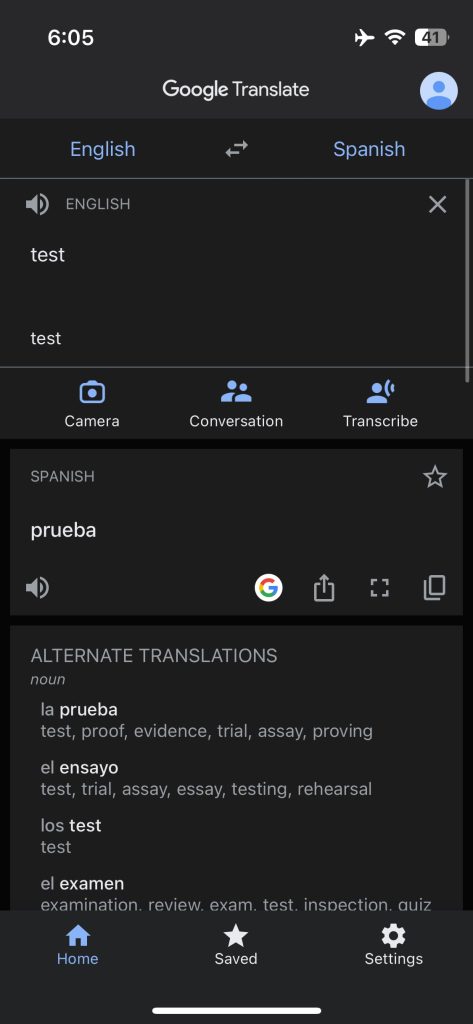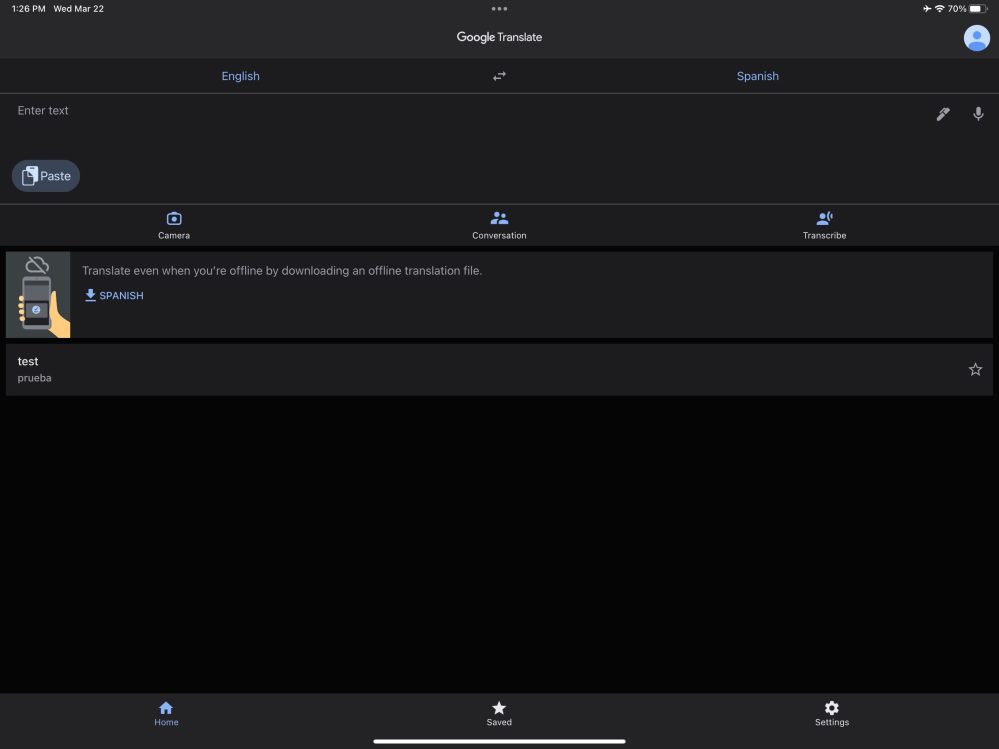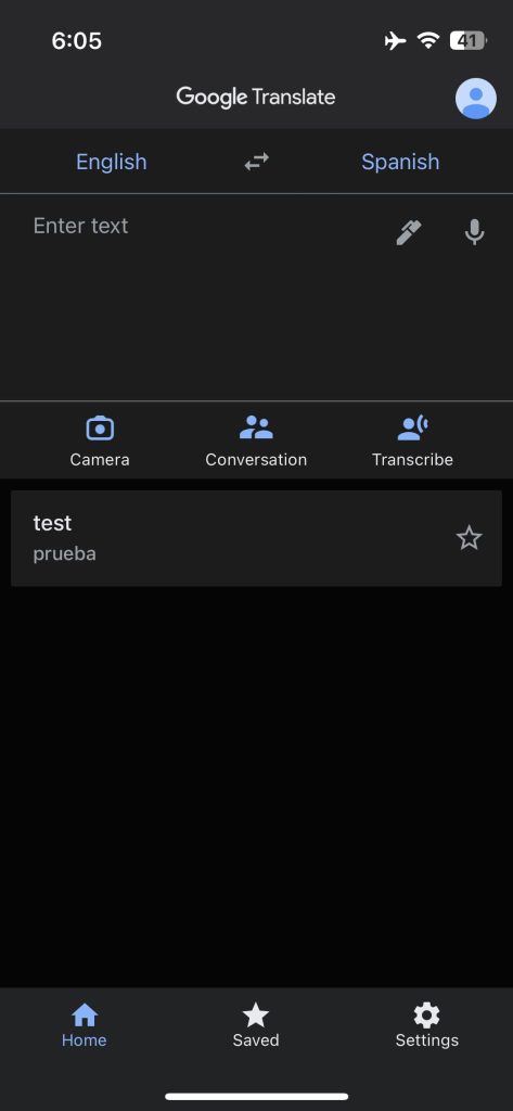 In the top-left corner you can access Saved phrases and transcripts, while tapping your avatar lets you access history. Past translations can also be accessed when the text field is open from the top bar, while the ability to swipe down on the main screen, like on Android, is not found on iOS. Google has also not added the ability to long-press and swipe on languages to quickly switch.