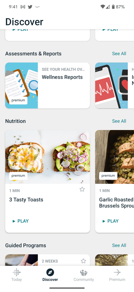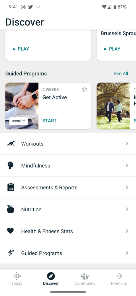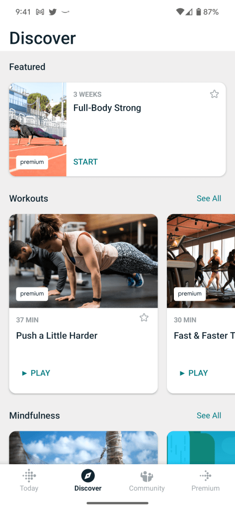The “Discover” tab in the Fitbit app is now lacking these longtime features, instead only showing workout guides, mindfulness and nutrition content, and similar programs and content.
