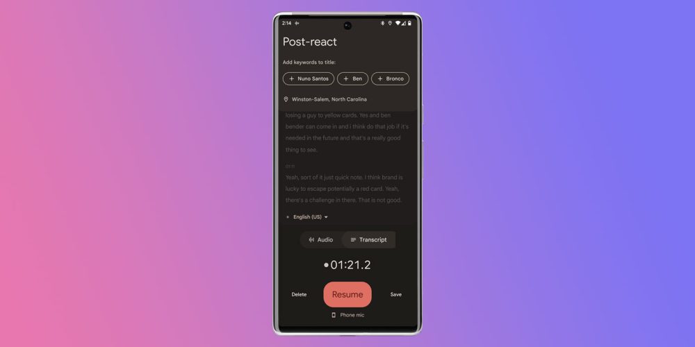 Since the feature is Tensor-driven, the only phones that can use this function are the Pixel 6, 6 Pro, 6a, 7, and 7 Pro. Any Tensor phone going forward will also be able to take advantage of speaker labels.