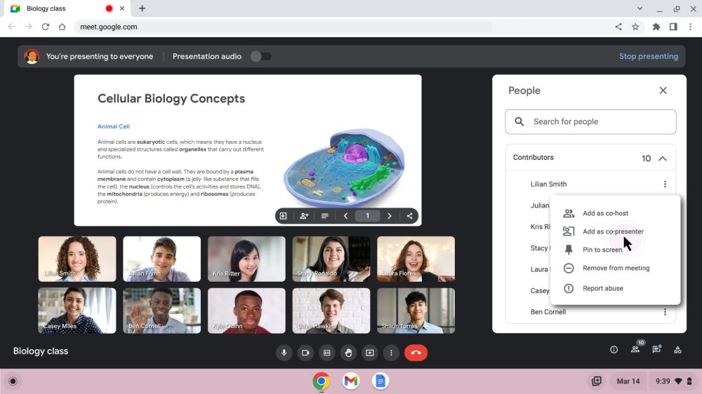 In Google Slides and Meet (Teaching and Learning Upgrade or Education Plus), speaker notes will now appear when presenting a deck during video calls. You’ll also be able to co-present (2+ people) in Slides with all parties being able to advance and start video in the coming months. Lastly, Meet recordings are getting support for adding closed captions in English, French, German, Portuguese (Brazil), and Spanish later this year.