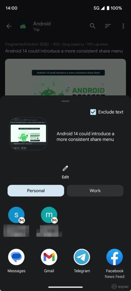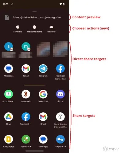 As highlighted by Mishaal Rahman on Esper, Google is working on five tweaks to the share sheet that will come to be in Android 14. This includes changes that are user-facing, as well as those that are behind the scenes, such as the share sheet now becoming a standalone app that can be updated independently of the operating system.