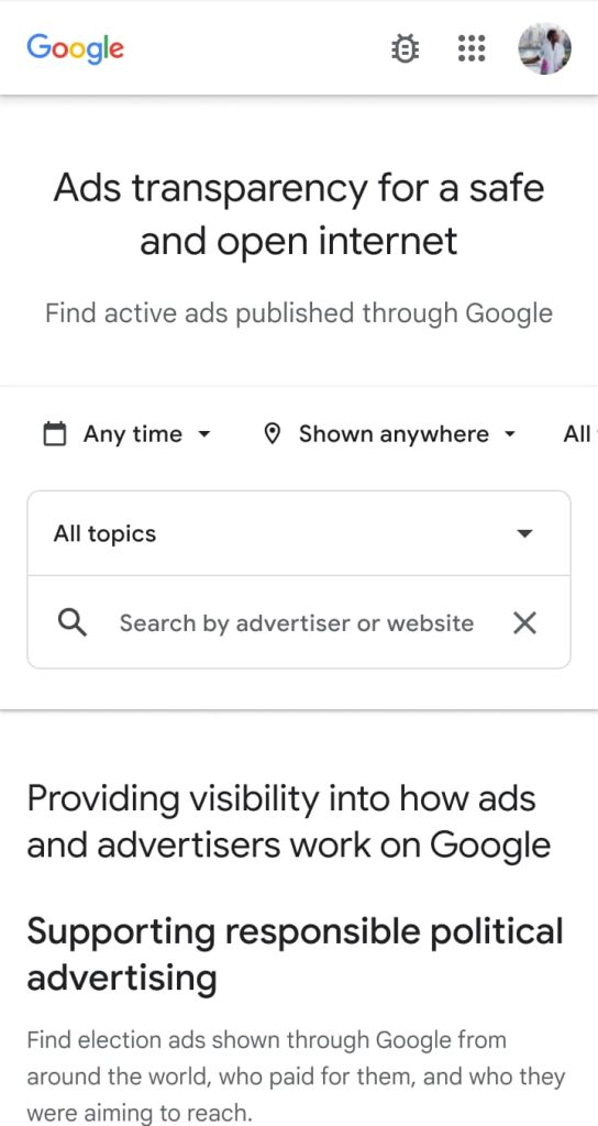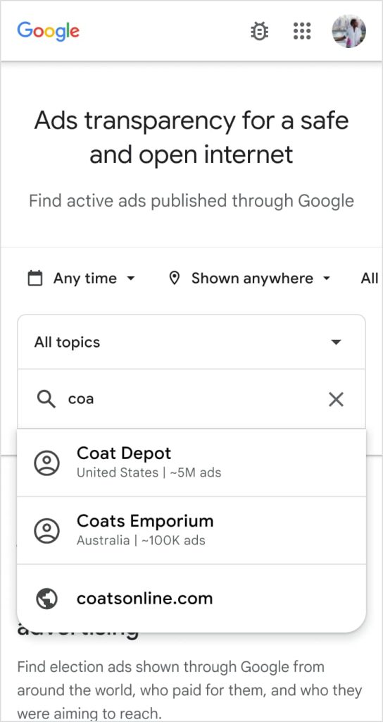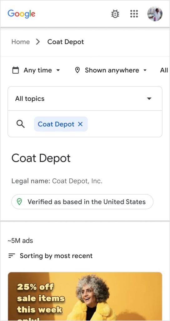 For example, imagine you’re seeing an ad for a skincare product you’re interested in, but you don’t recognize the brand, or you’re curious to understand if you recognize other ads from this brand. With the Ads Transparency Center, you can look up the advertiser and learn more about them before purchasing or visiting their site.