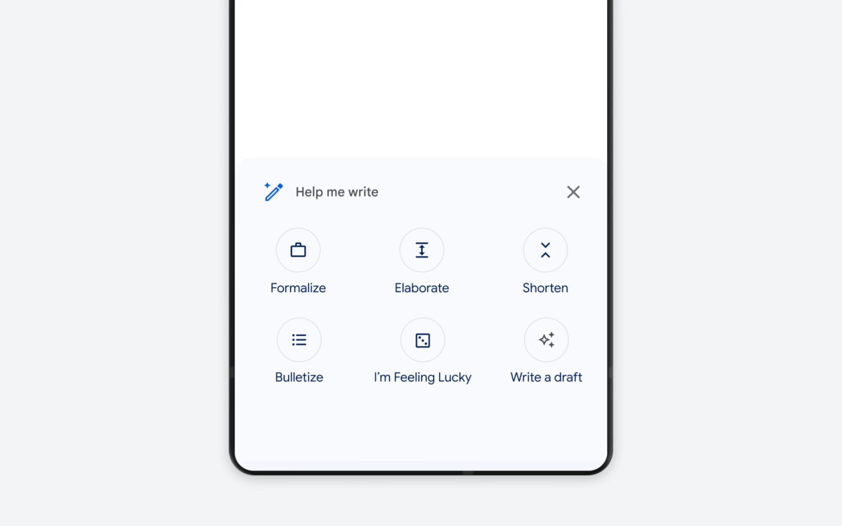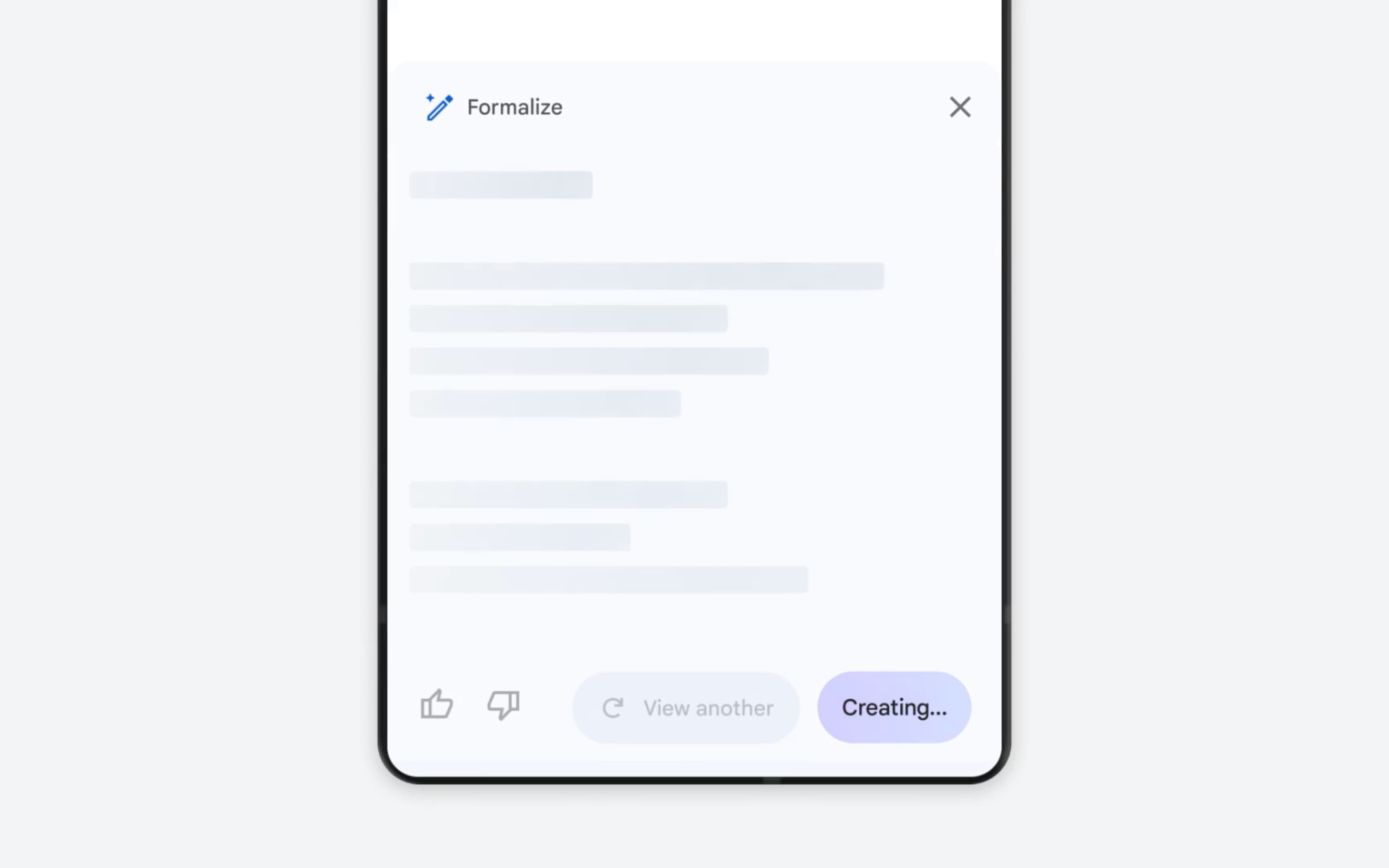 In Gmail, you can use generative AI to draft everything from a birthday invitation to a job cover letter. Users can also have Google take what they’ve written and make it more elaborate or shorten it, including down to bullet points. There’s also the ability to “Formalize” a message, while Google has shown off a whimsical “I’m feeling lucky” option that adds levity and makes other whimsical stylistic choices (e.g., emoji).