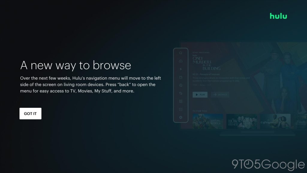 Hulu has just confirmed the launch of a brand new redesign for its TV interface that finally brings sidebar navigation to Google TV, Apple TV, and other platforms.