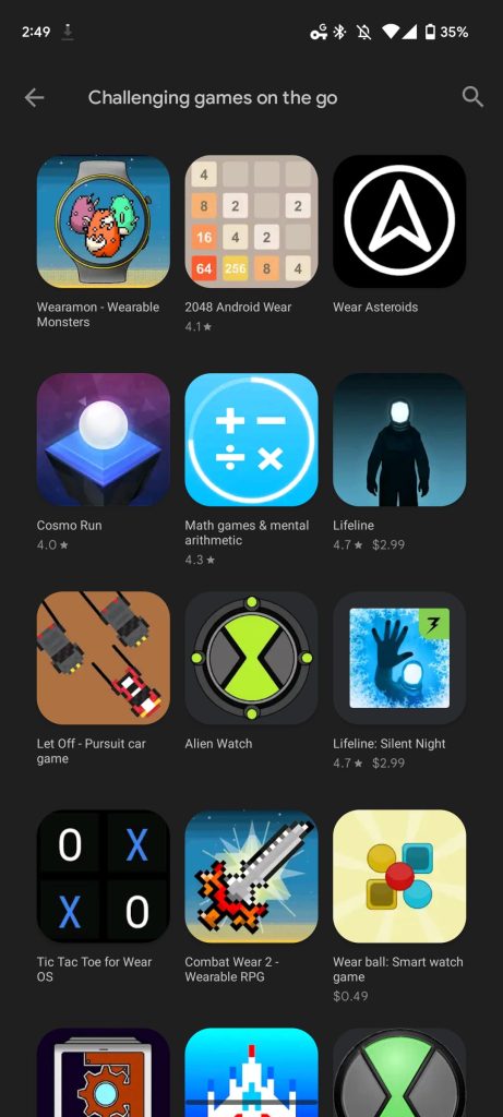 From there, you can have any of these downloaded to your watch. You can also find games by searching and using the “Your devices” filter. Playing games on a small circular display is far from ideal, but it is something to certainly pass the time with your Wear OS device.