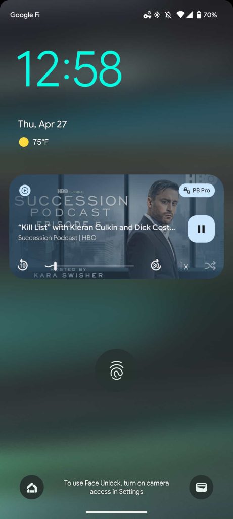 The Now Playing screen replaces next/previous with 10-second rewind/30-second forward, while you have playback speed on the left and a sleep timer on the right. Show “Details”/notes are found instead of Lyrics at the bottom, while the Up Next queue is unchanged. Meanwhile, the mini-player swaps out the next button for 30-sec, while the Android 13 media player adds playback speed controls that you can toggle through.