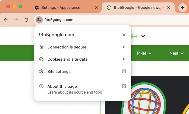 The lock icon that previously appeared to the left of the current URL, used to indicate that you’re browsing a site securely via HTTPS, has been swapped with an icon that indicates toggles. This change makes it more obvious that settings for cookies and web permissions are located there. If you browse an insecure website, the usual “Not Secure” warning appears in a colorful chip.