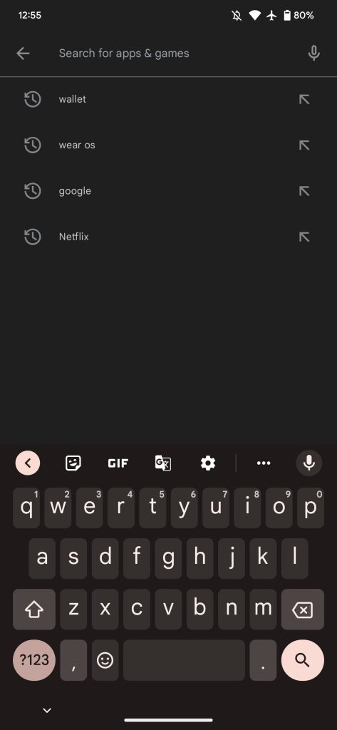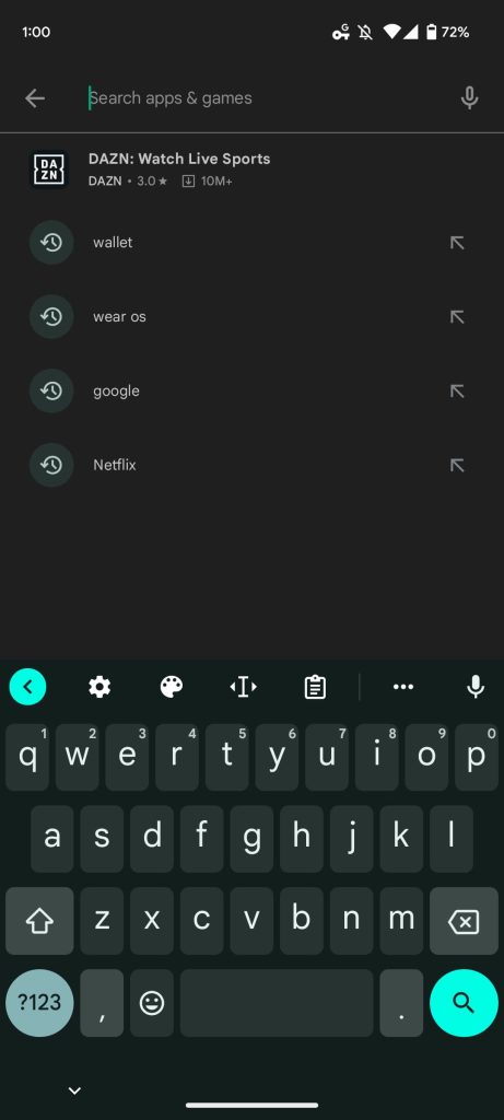 When you tap the Google Play search bar at the top of the app, you previously just saw your last four queries. Now, you might see up to three “limited-time events as well as sponsored suggestions,” with past searches appearing below that.