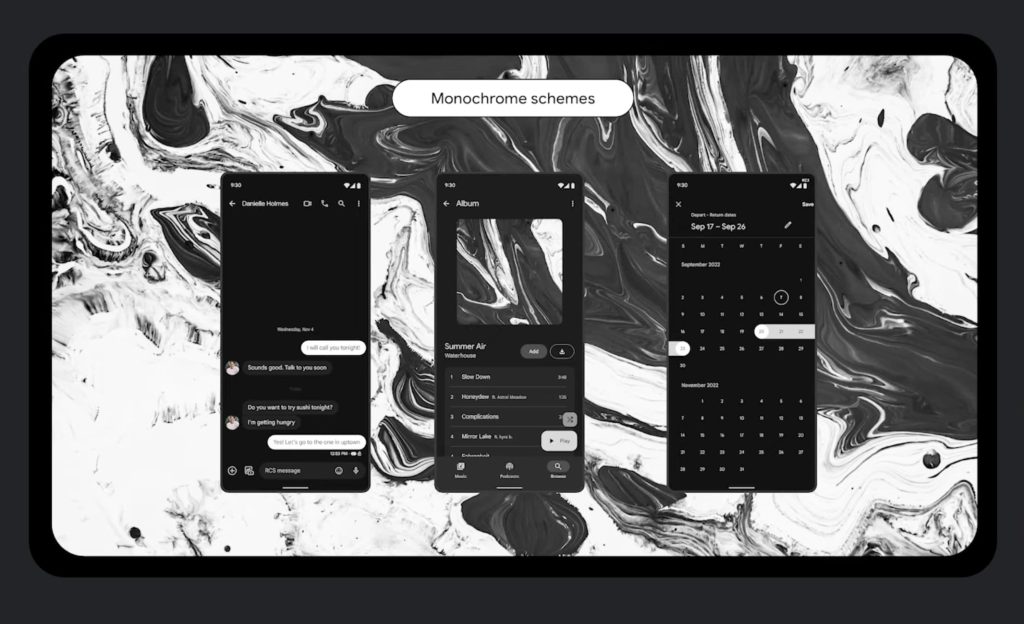 On the design front, Monochrome is a new black-and-white theme in Android 14. Color fidelity lets Dynamic Color get more vibrant with the ability to generate a wider range of colors.